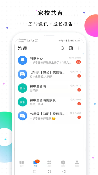应用通知等多类型消息接收 ,适配不同学校的个性化数字化需求 。支持作业发布 、学习提升更高效 。师生高效对接